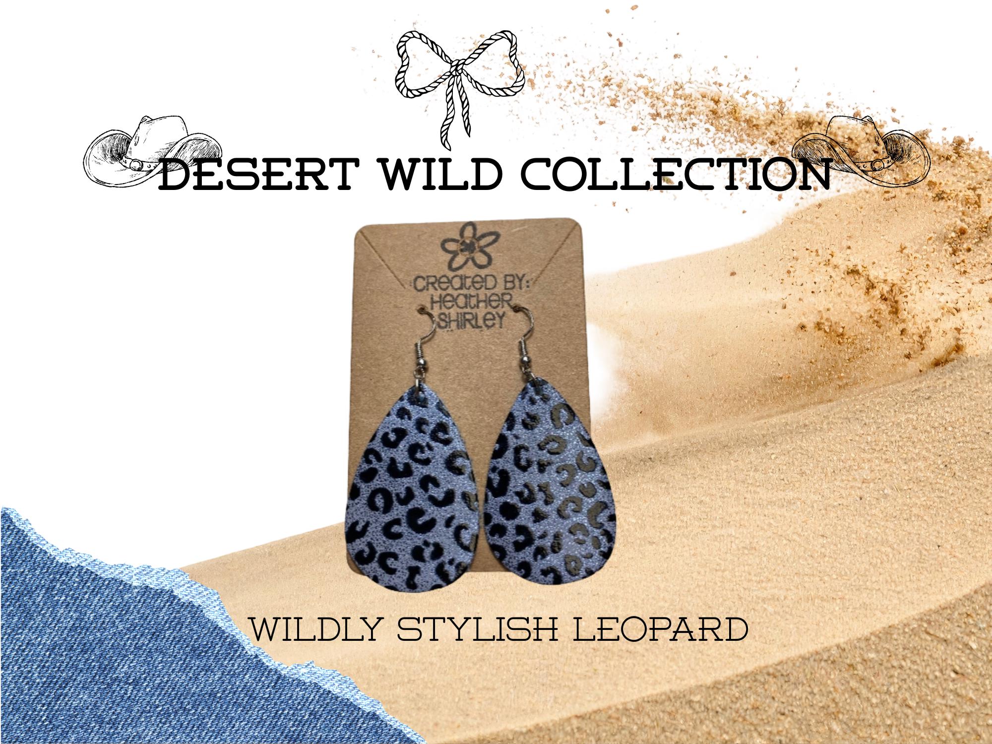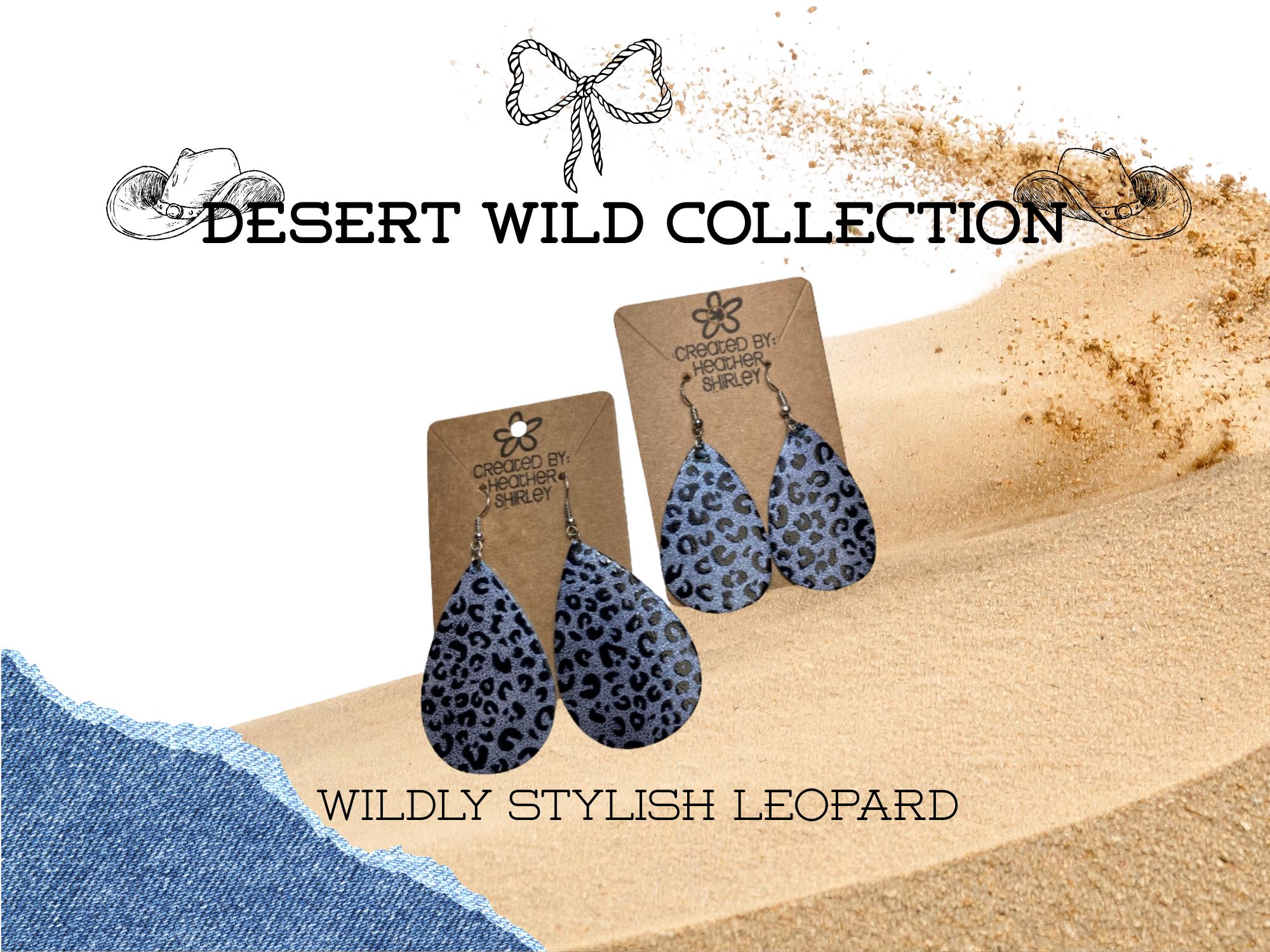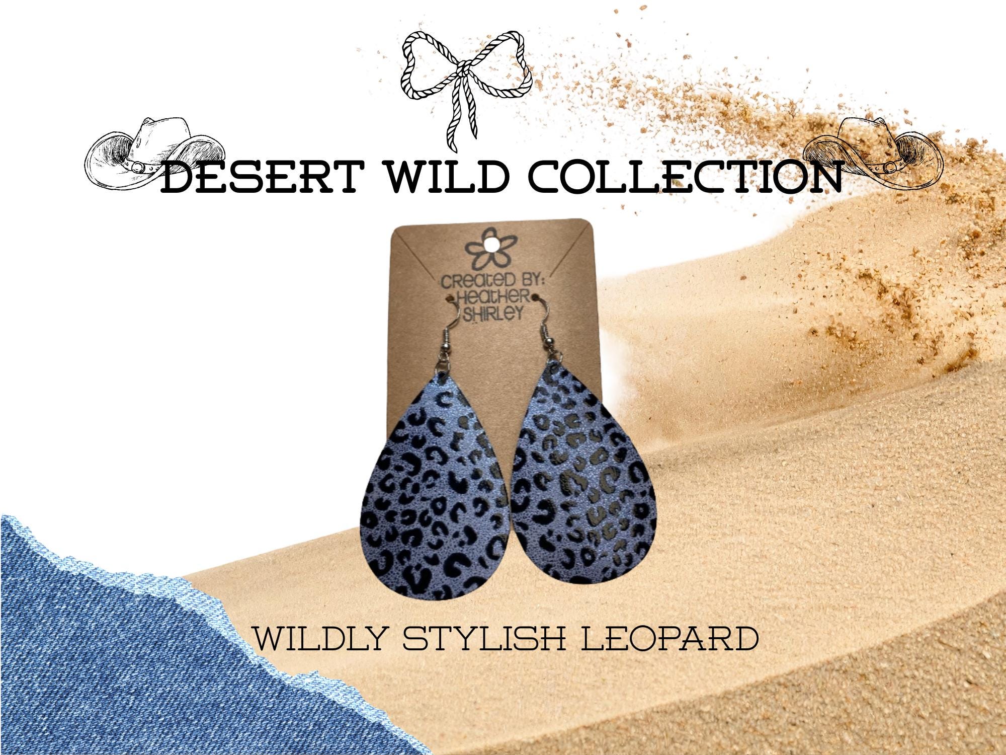 Blue and Black Leopard Print, Teardrop Faux Leather Earrings