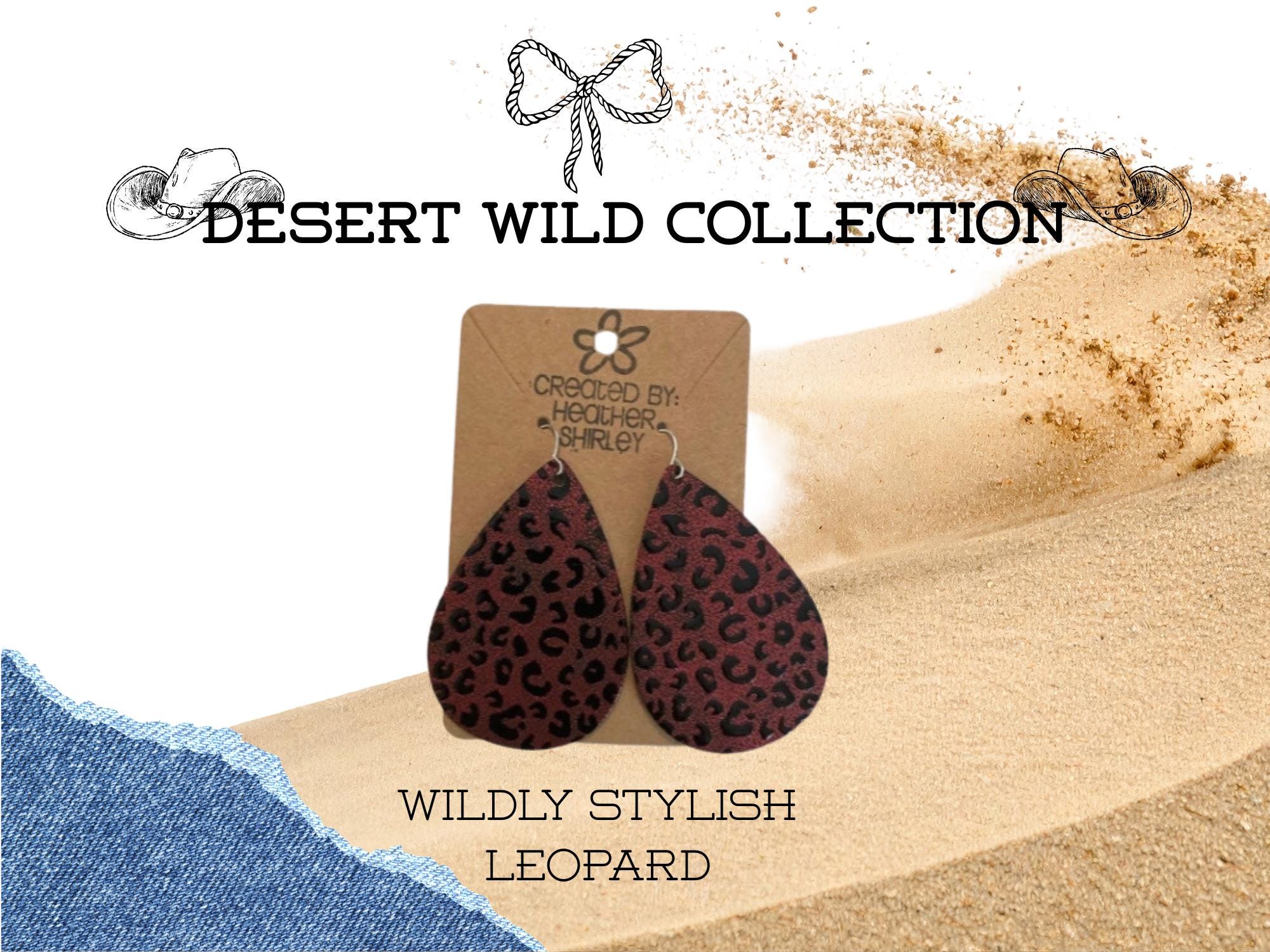 Metallic Red and Black Leopard Print Faux Leather Earrings