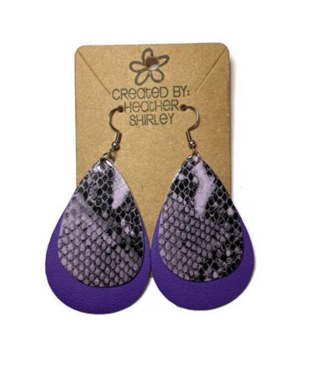 Purple Snake Print with Purple Layer, Faux Leather Earrings