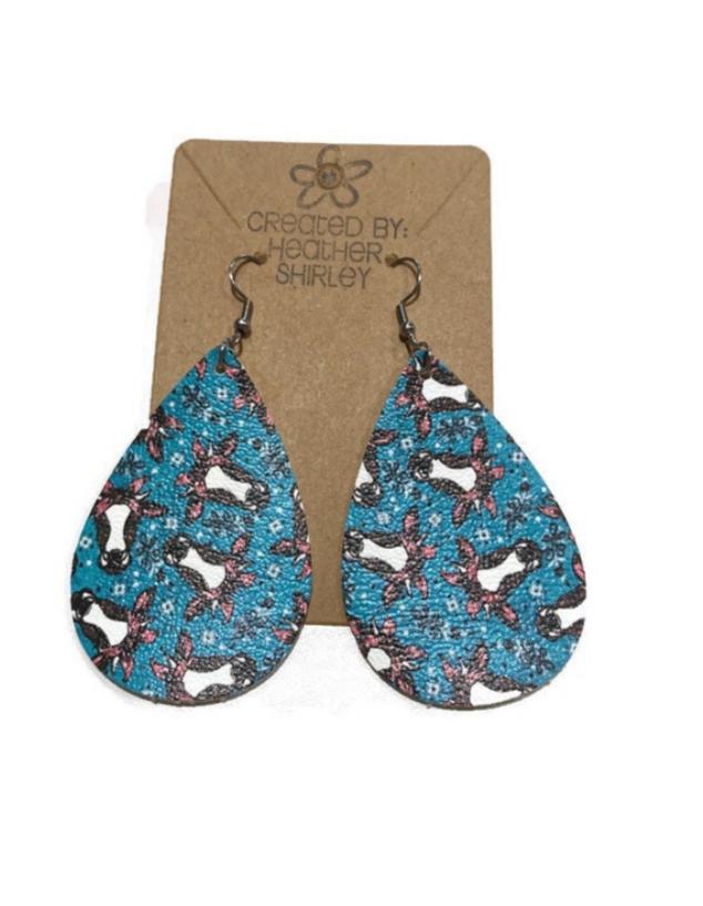 Cow, Bandana, Turquoise Faux Leather Earrings