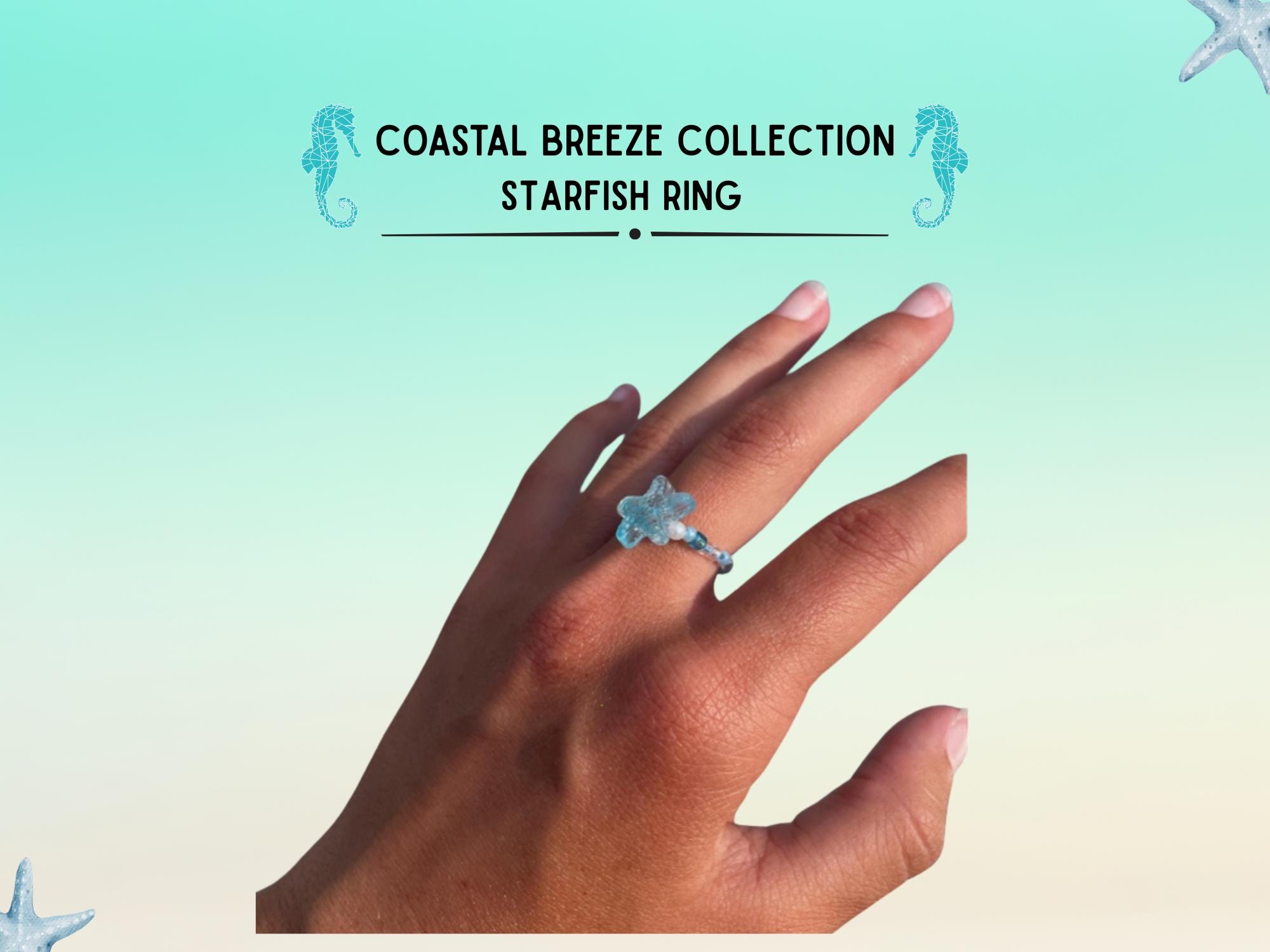 Beaded starfish stretchy ring