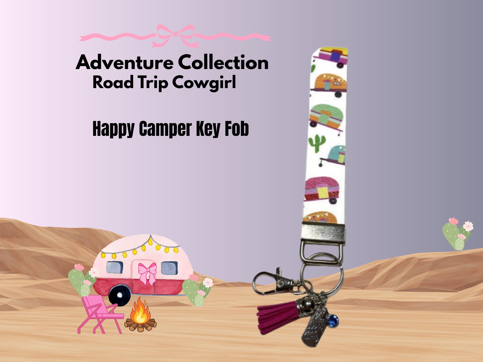 Road Trip Cowgirl, Happy Campers Key Fob Key Chain.