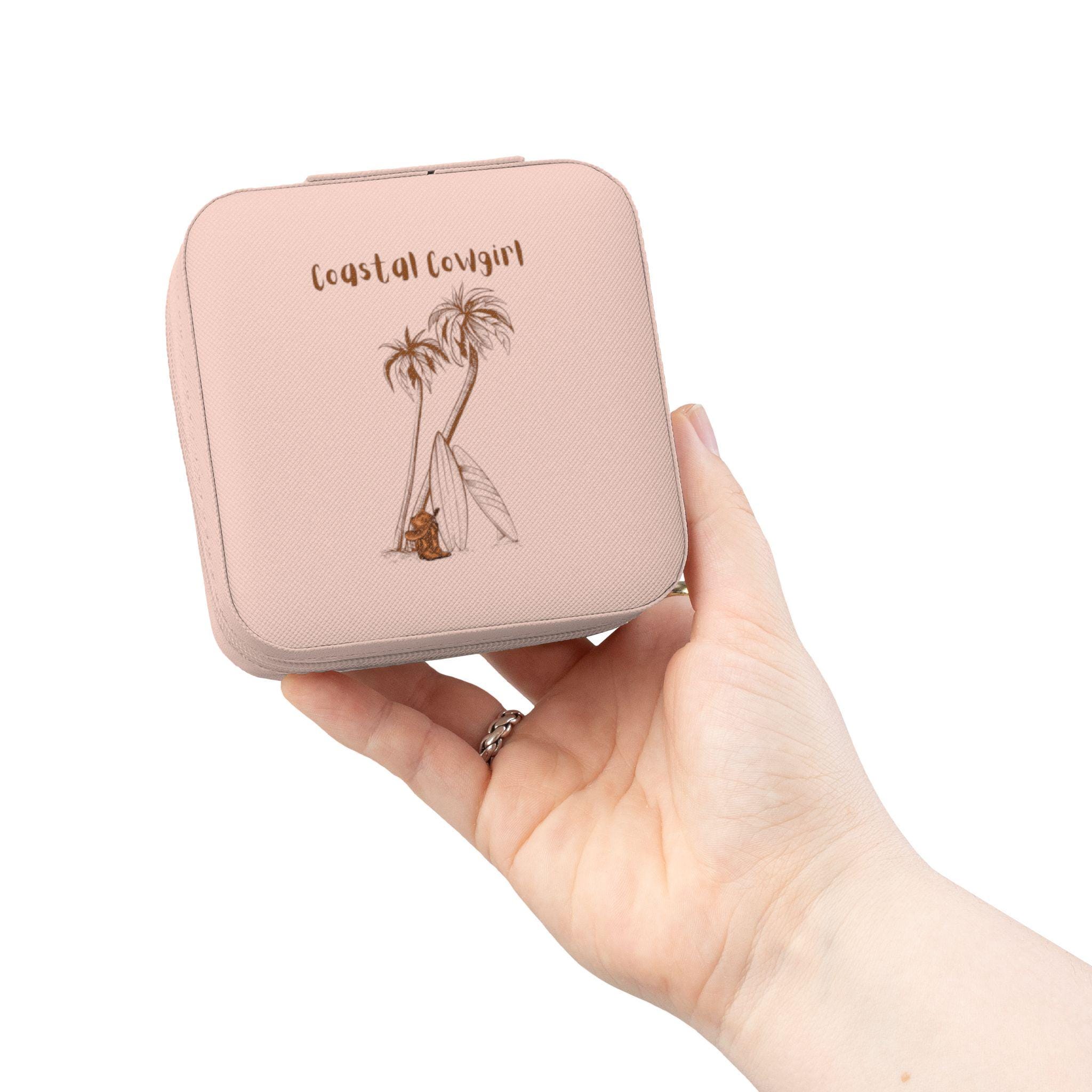 A compact jewelry travel case designed to carry your most-loved pieces without fuss. Soft PU leather wraps a plush, scratch-resistant interior with divided compartments, ring rolls, and necklace hooks so things stay organized and tangle-free. The square zip-around closure keeps contents secure while taking up minimal space in a carry-on or day bag. Its understated, sun-kissed design and muted blush tone make it feel like a small, personal treasure—ready for weekend escapes, business trips, or that longed-for beach weekend.