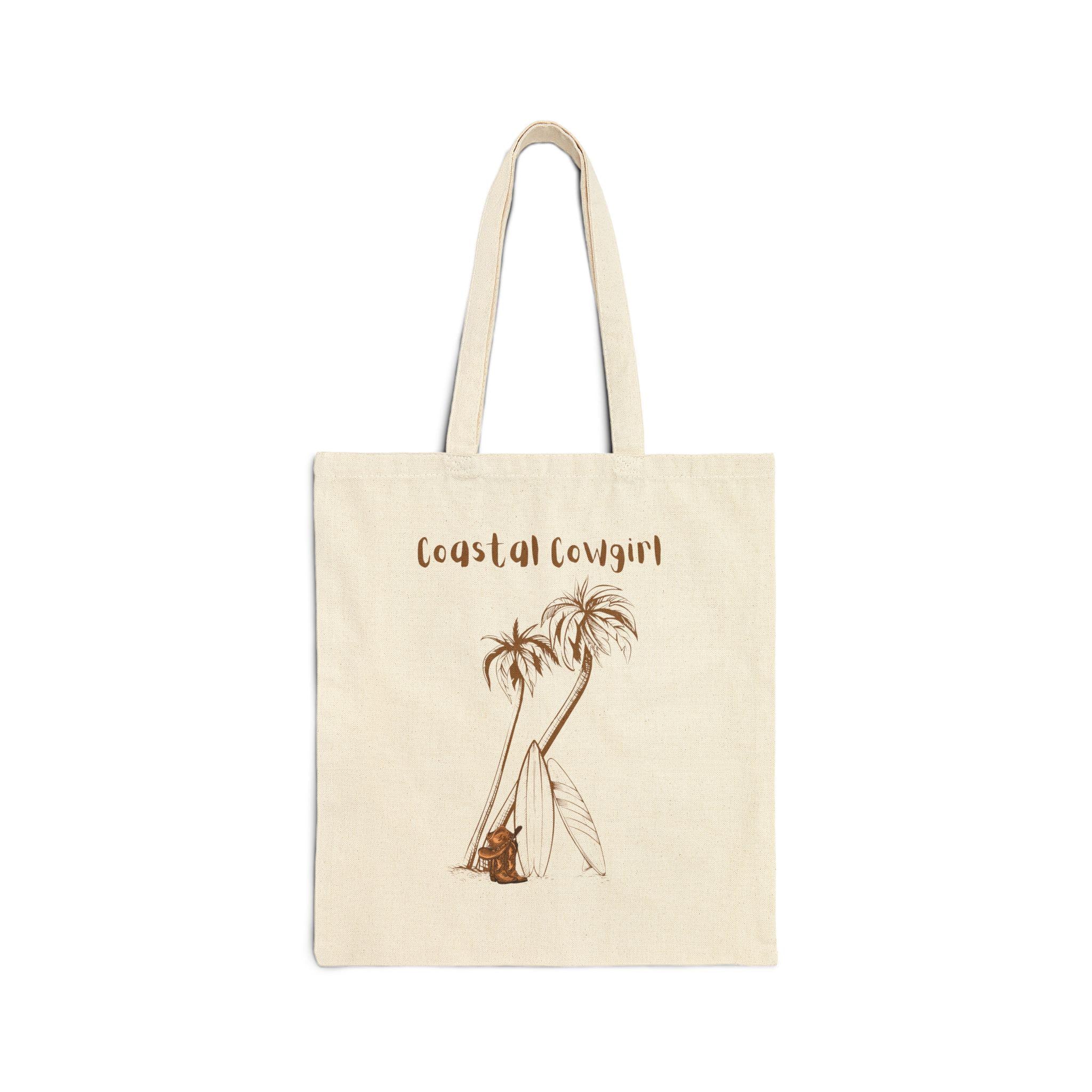 Lightweight but sturdy, this cotton canvas tote carries a small slice of the shoreline with you. The soft natural canvas features a minimalist surf-and-palm sketch and the handwritten ‘coastal cowgirl’ lettering, evoking sun-warmed sand and slow, salty afternoons. The flat-corner construction keeps the silhouette slim so it slips easily under an arm or into a bike basket. Reinforced self-fabric handles sit comfortably on the shoulder while the heavy 12 oz canvas stands up to daily use — farmers’ market runs, beach days, or stack-of-books commutes. Subtle, sewn-in labeling and the option of natural or black let the bag blend into a relaxed, lived-in wardrobe without shouting for attention.