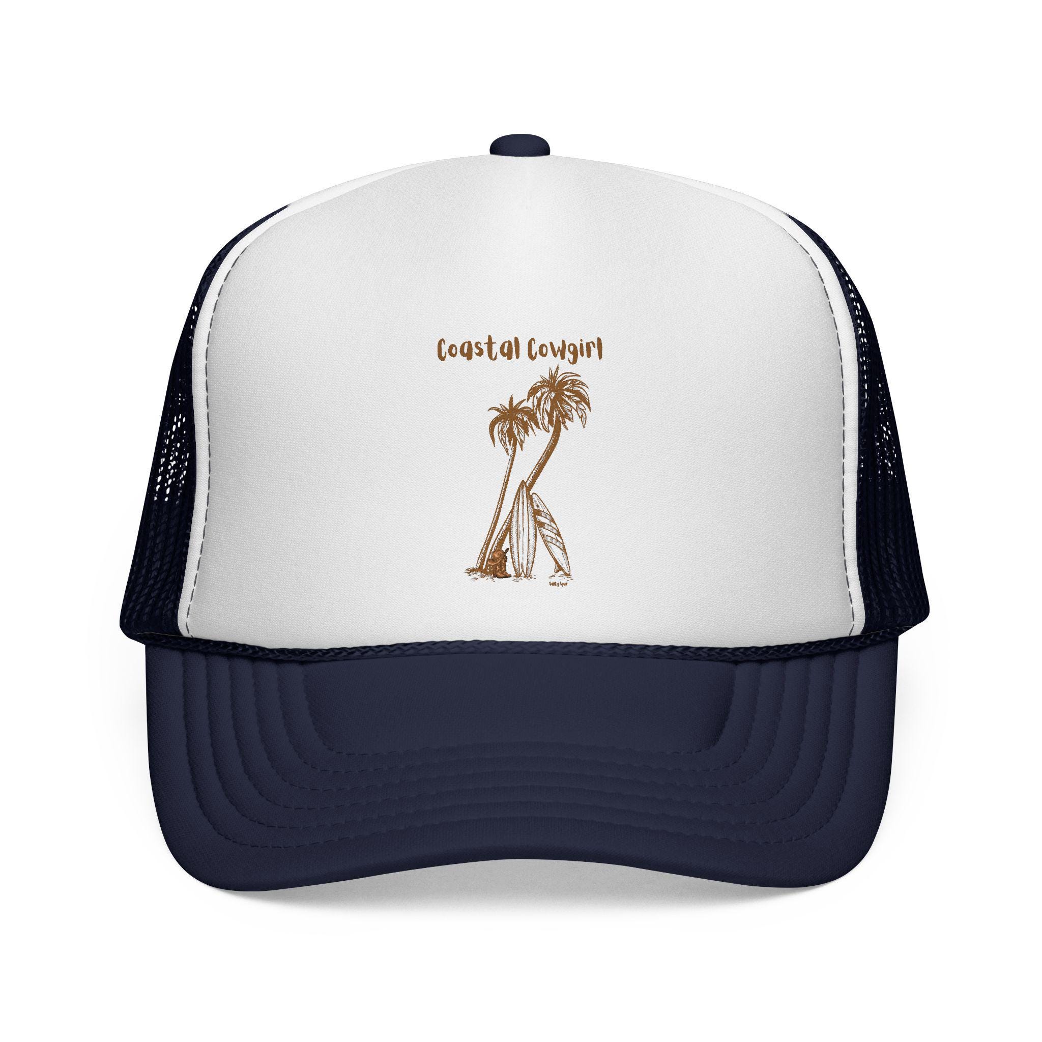 Call up sun-soaked mornings and late-afternoon surf sessions with this laid-back trucker cap. Lightweight foam front and breathable mesh back keep you cool on coastal walks, while the embroidered palm-and-surfboard motif whispers of easy weekends and roadside stops. The adjustable snap lets this cap move from stroller to surfboard, and the color-matched details give a clean, finished look that pairs with denim, boardshorts, or a well-loved tee. Wear it on beach runs, bonfire nights, or wherever you chase horizon lines — it settles into your routine like an old friend.