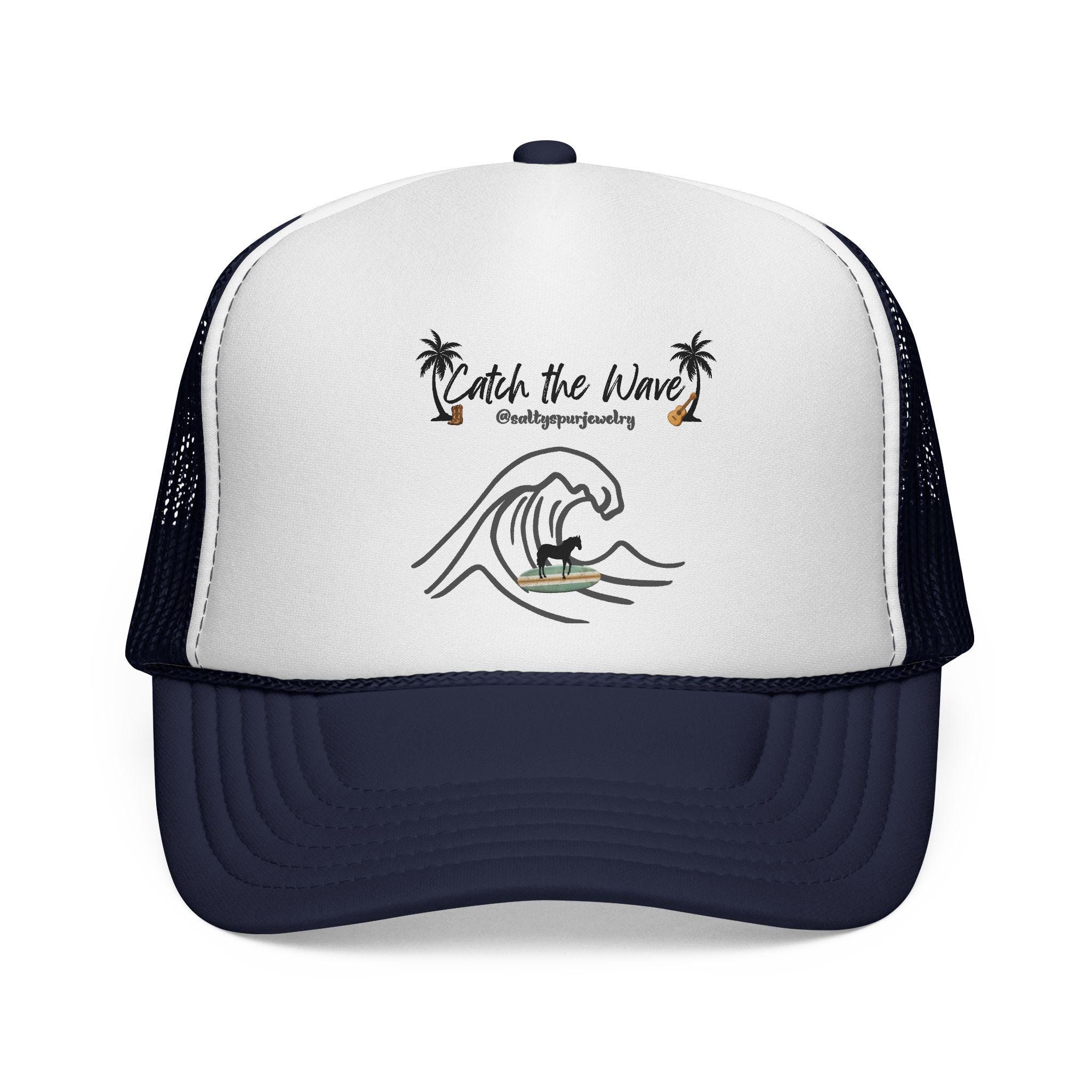 Sun warm on your skin, salt on your lips, and the steady hum of the coastline — this trucker cap carries that easy, surf-side energy with every wear. The embroidered wave and palm motif reads like a small, portable postcard from your favorite break. Lightweight foam front and breathable mesh back keep you cool through long beach days or busy city commutes. The curved visor and six-row stitching give structure and a vintage surf feel, while the adjustable snap ensures a relaxed fit that settles in as you move. Wear it on weekend drives, early-morning surf checks, or when you just want to carry a little shoreline calm with you.