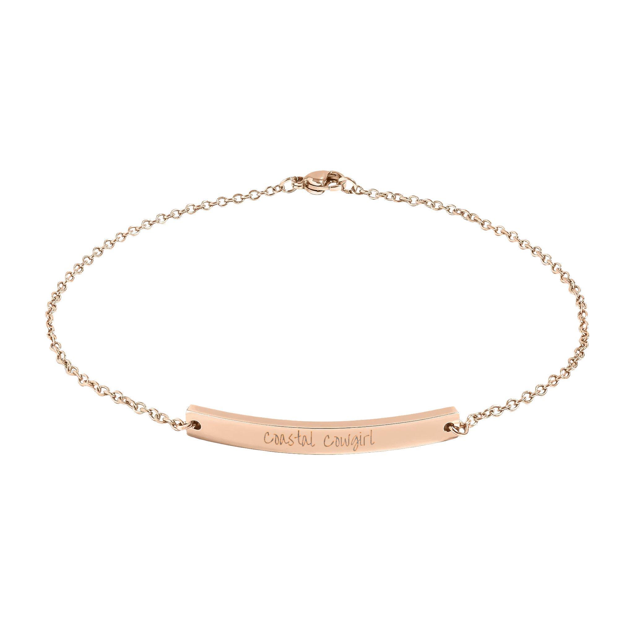 A slim, curved bar anklet that sits gently against the ankle with a subtle engraved detail. Crafted from 316L surgical-grade stainless steel and finished with a durable PVD coating, this anklet offers a warm, polished shine that resists tarnish and stands up to daily wear — even in water. Lightweight and unobtrusive, it moves with you: layered with sandals at the beach, peeking out from sneakers on city walks, or adding a quiet glow at evening gatherings. Arrives in a white jewelry box with non-tarnish cotton fiber to keep the piece protected and ready for gifting or everyday wear.