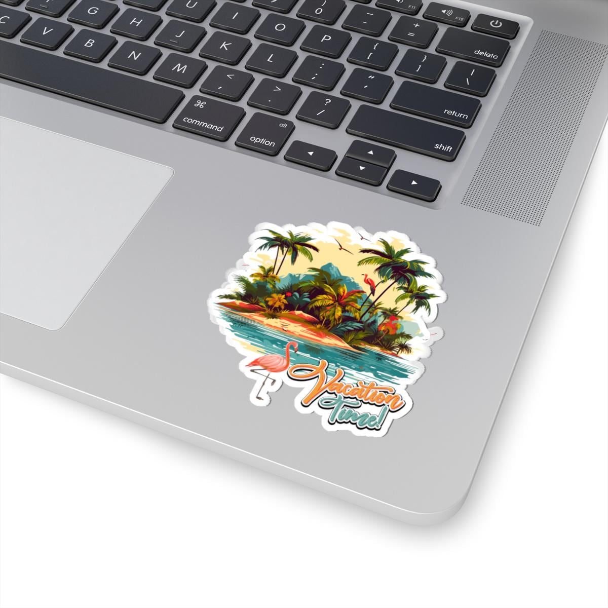 Bring a little island escape into everyday things with this glossy kiss-cut sticker. Lush palms, flamingos, and a sunlit shore are rendered in warm, saturated inks that pop against laptops, journals, and sketchbooks. The die-cut edge follows the design for a clean, finished look while the durable vinyl and permanent acrylic adhesive keep it stuck through daily wear. It’s the sort of small, cheerful detail that nudges your mind toward relaxed mornings, salted breezes, and the easy humor of vacation days — a bright accent when you need a tiny getaway on the go.