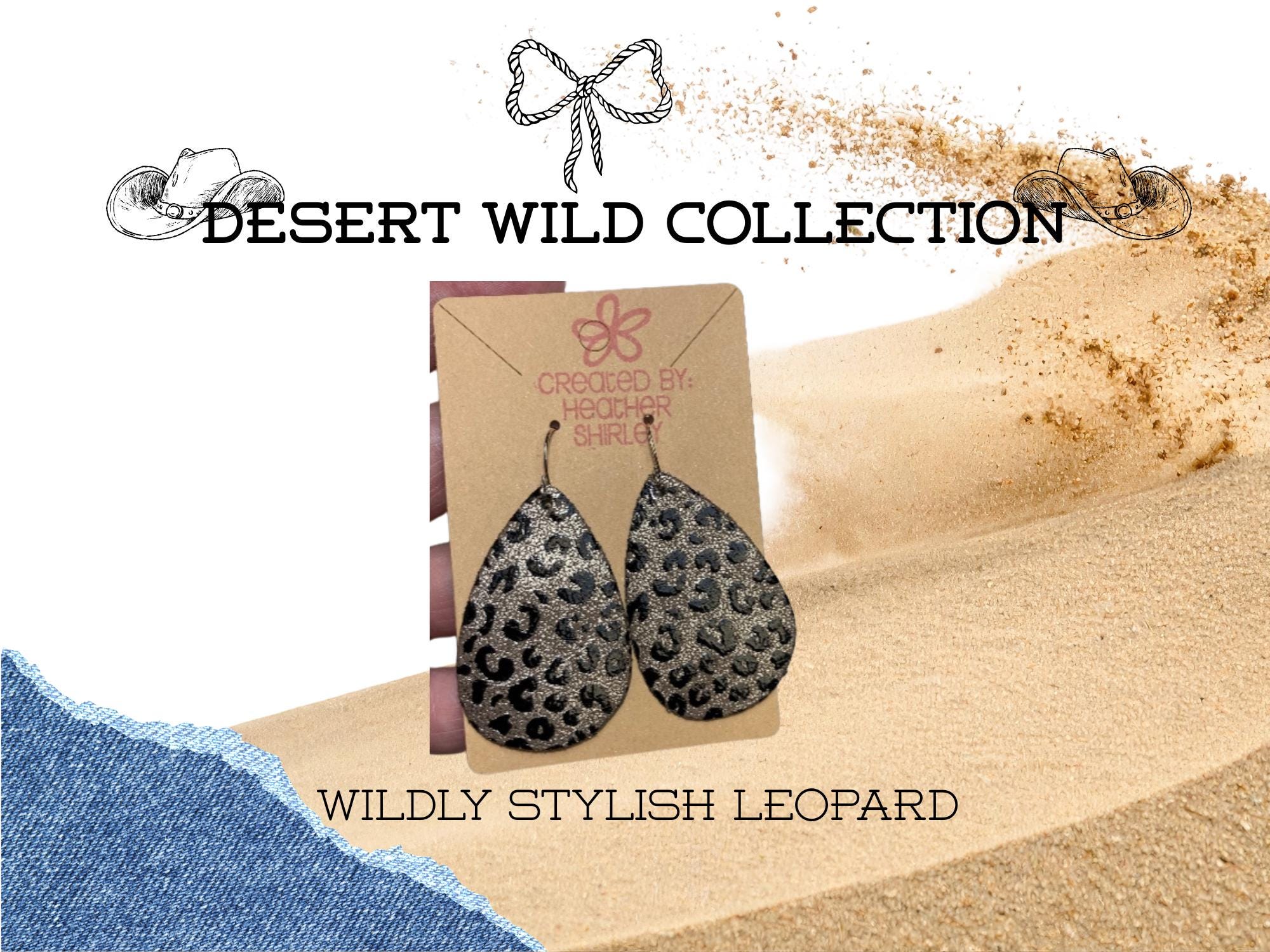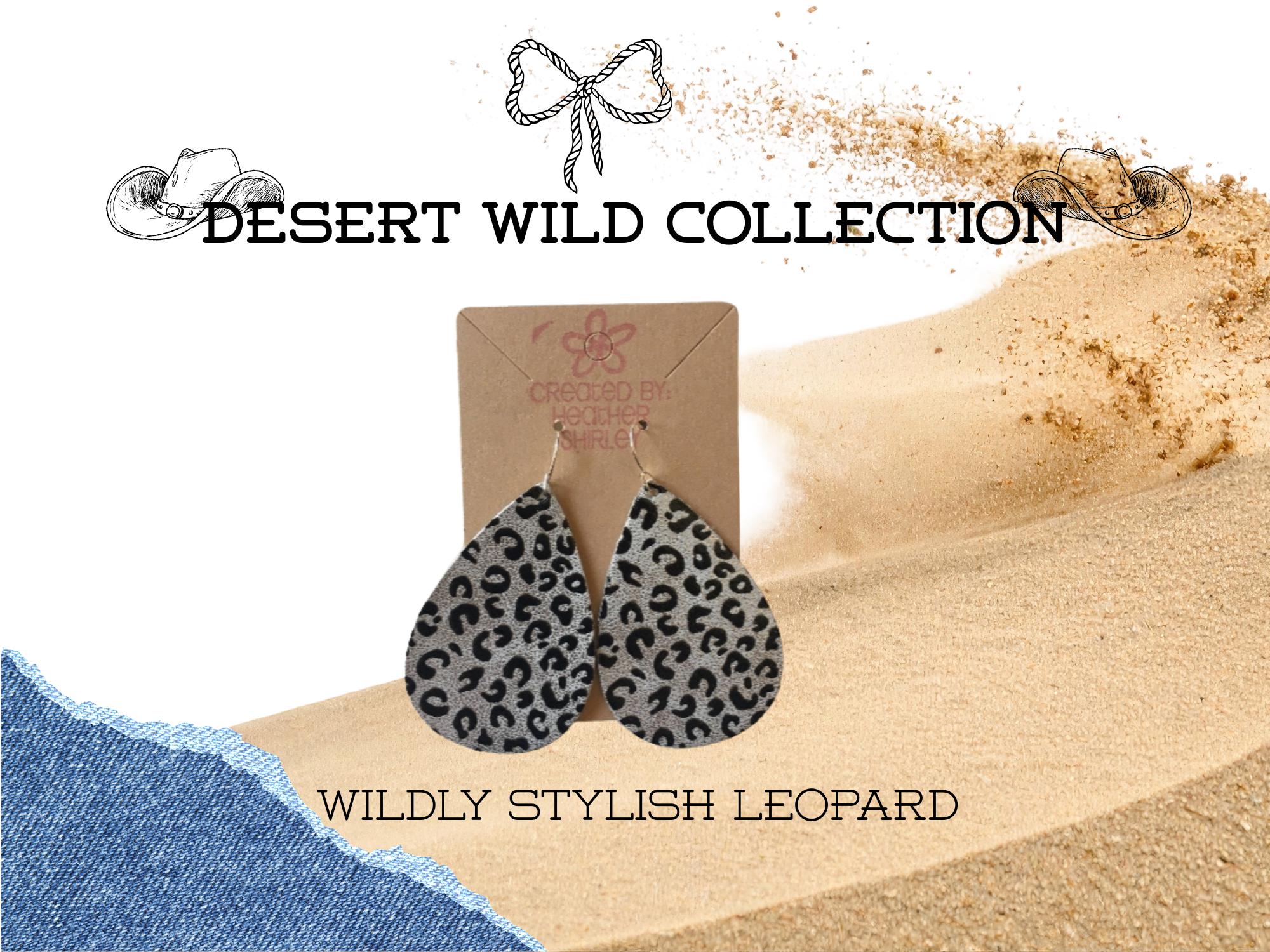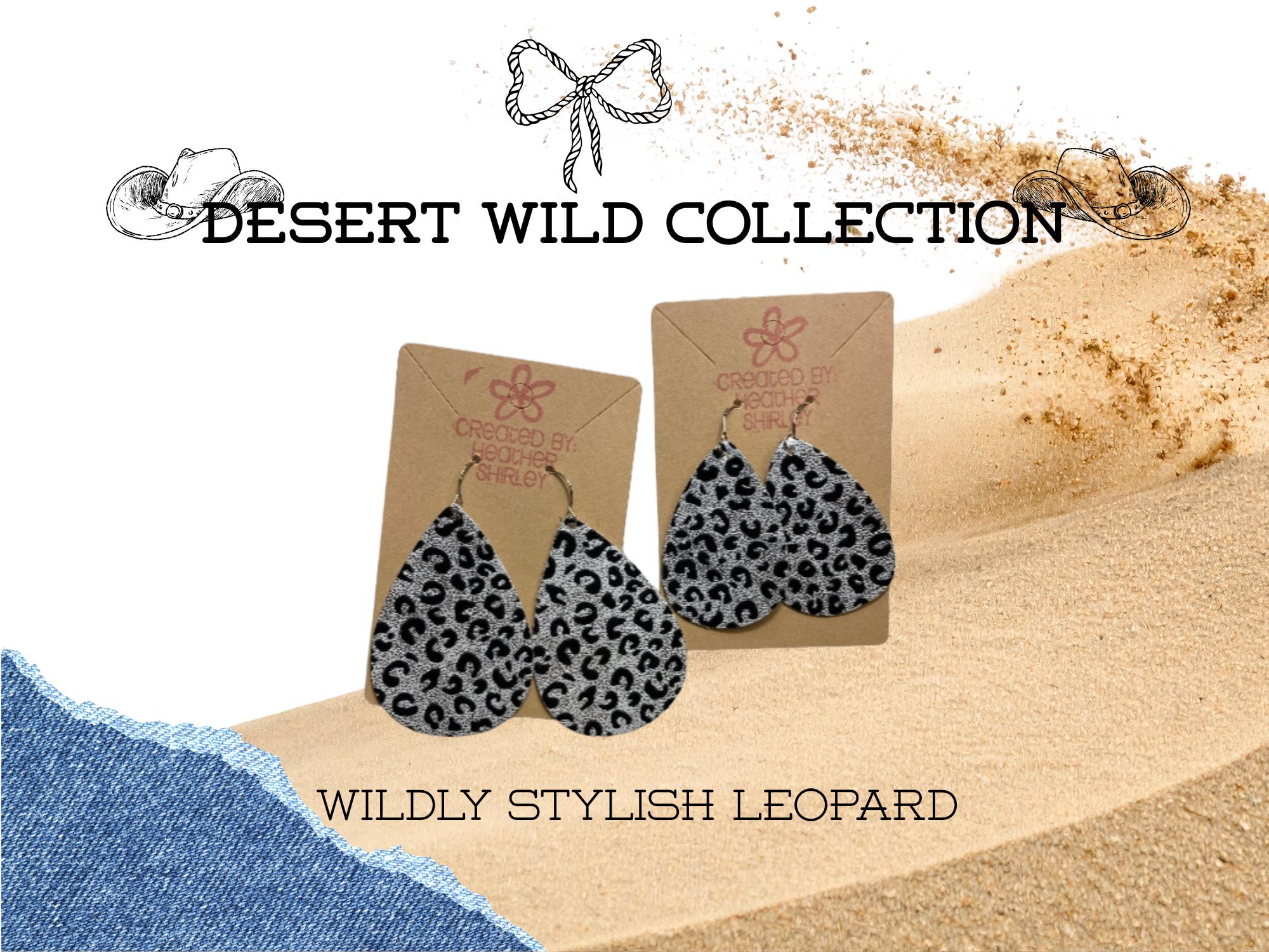 Silver With Black Cheetah Spots, Teardrop Faux Leather Earrings.